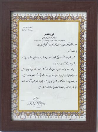 لوح تقدیر مدیر جهاد کشاورزی شهرستان تیران و کرون-آبان ۱۴۰۲