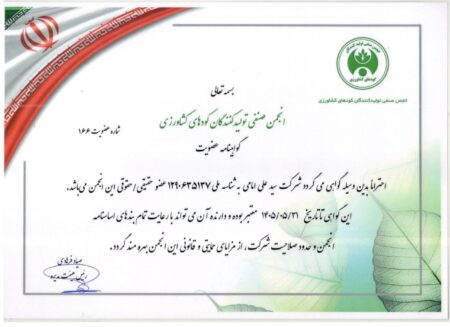 گواهینامه ثبت مواد کودی