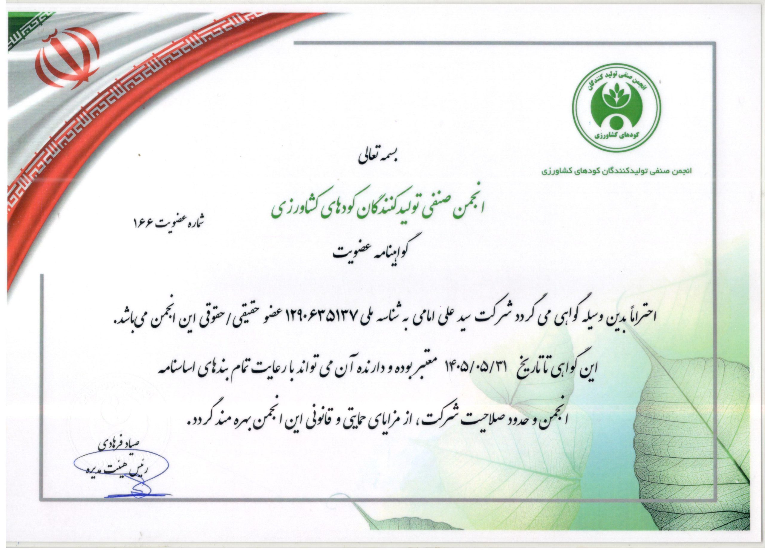 عضویت در انجمن تولیدکنندگان کودهاس کشاورزی ۱۴۰۵-۱۴۰۴