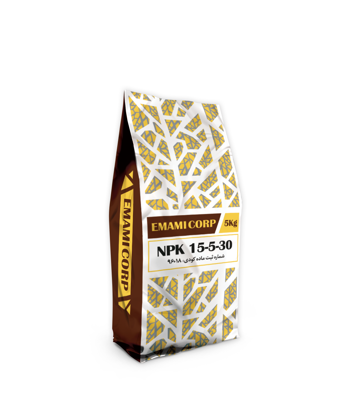 کود کامل NPK پتاسیم بالا اِن­ پی­ کا 30-5-15 با دارا بودن 15 درصد نیتروژن، 5 درصد فسفر و 30 درصد پتاسیم بهترین گزینه برای افزایش شاخص سطح برگ (LAI) و شاخص دوام برگ (LDI) در درختان مثمر، غیرمثمر و محصولات زراعی است و افزایش فتوسنتز و عملکرد را به همراه دارد. کاربرد 30-5-15 همچنین سرزندگی، شادابی و سبزینگی بالا در درختان را به همراه دارد.